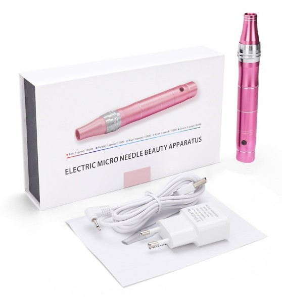 Máquina para terapia de microagujas. Permite que los productos utilizados como cremas o sueros sean absorbidos mejor en la piel. – Ayuda a eliminar, acné, cicatrices, manchas, arrugas y líneas de expresión. También se puede colocar en el cuero cabelludo para personas que necesitan colocarse tratamientos para el crecimiento del cabello.